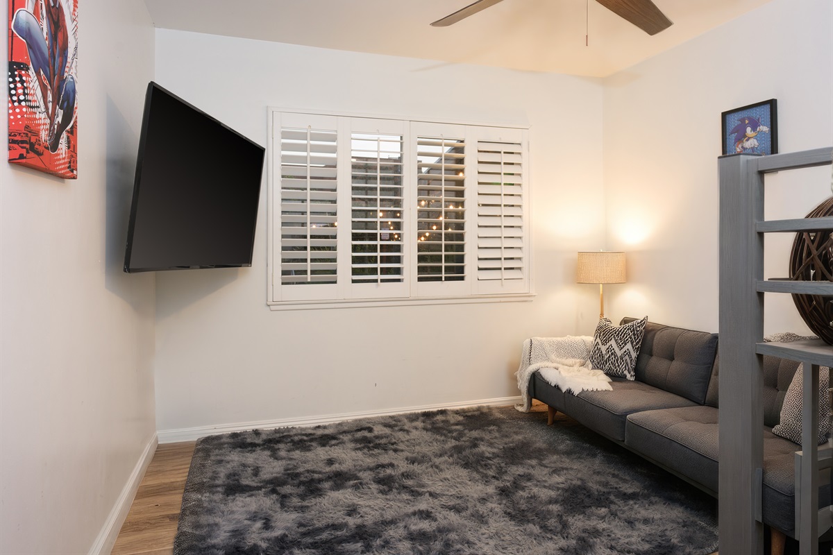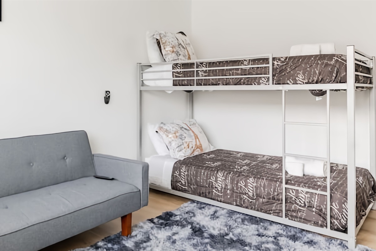 • Bedroom 3 — Twin-over-twin bunk beds with TV and toys