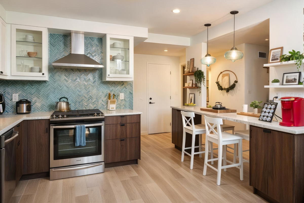 The open layout connects the living room, dining area, and kitchen, making it easy for everyone to gather in one place. Large windows and backyard access keep the home bright and welcoming throughout the day.